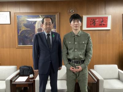 第19回都道府県対抗全日本中学生男子ソフトボール大会に出場した愛知PHOENIXに所属する幸田中1年生の猟沢様と首藤様、南部中1年生の生田様、北部中2年の高橋様がその報告のために来訪されました。